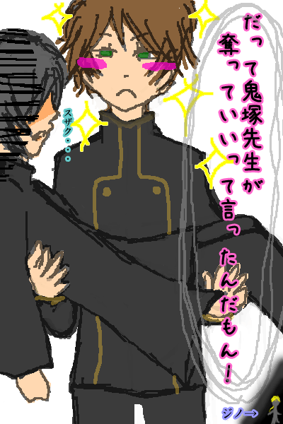 そんな感じで色んな所に遊びに行ってる間にHDDにたまったドラマやらアニメやらを急いで消化してる今現在進行中な私ですが、GTOのスペシャルドラマの再放送見ながらボーッと書いてた絵を折角なのでおいていく(゚∀゚)